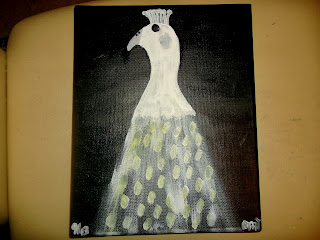 Now, back to the painting. This is the second of this painting. The first was a practice, and was quite lovely too. It is a White Peacock with black background. The first one was done on acrylic paper, and will be in my Etsy store soon. This one is on 8x10 canvas and I used a little bit of a different technique to enhance the feathers a little bit more. I really like it. This canvas one is a Christmas gift for a very special friend of mine. Tell me what you think.